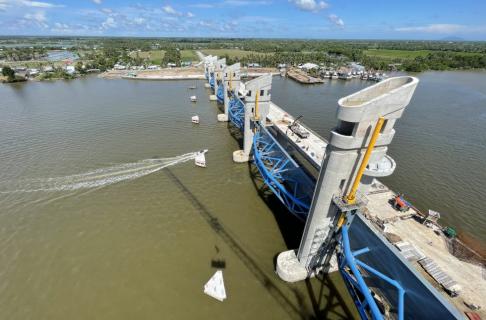 Trưa 17.6, tại công trình cống thủy lợi Cái Lớn có quy mô lớn nhất Việt Nam, Ban quản lý Đầu tư và xây dựng thủy lợi 10 (Ban 10), thuộc Bộ (NN-PTNT), cùng Công ty CP Lilama 10 và các đơn vị liên quan đã tiến hành lắp đặt cửa van cuối cùng trong tổng số 11 cửa van “khổng lồ” tại công trình cống Cái Lớn.